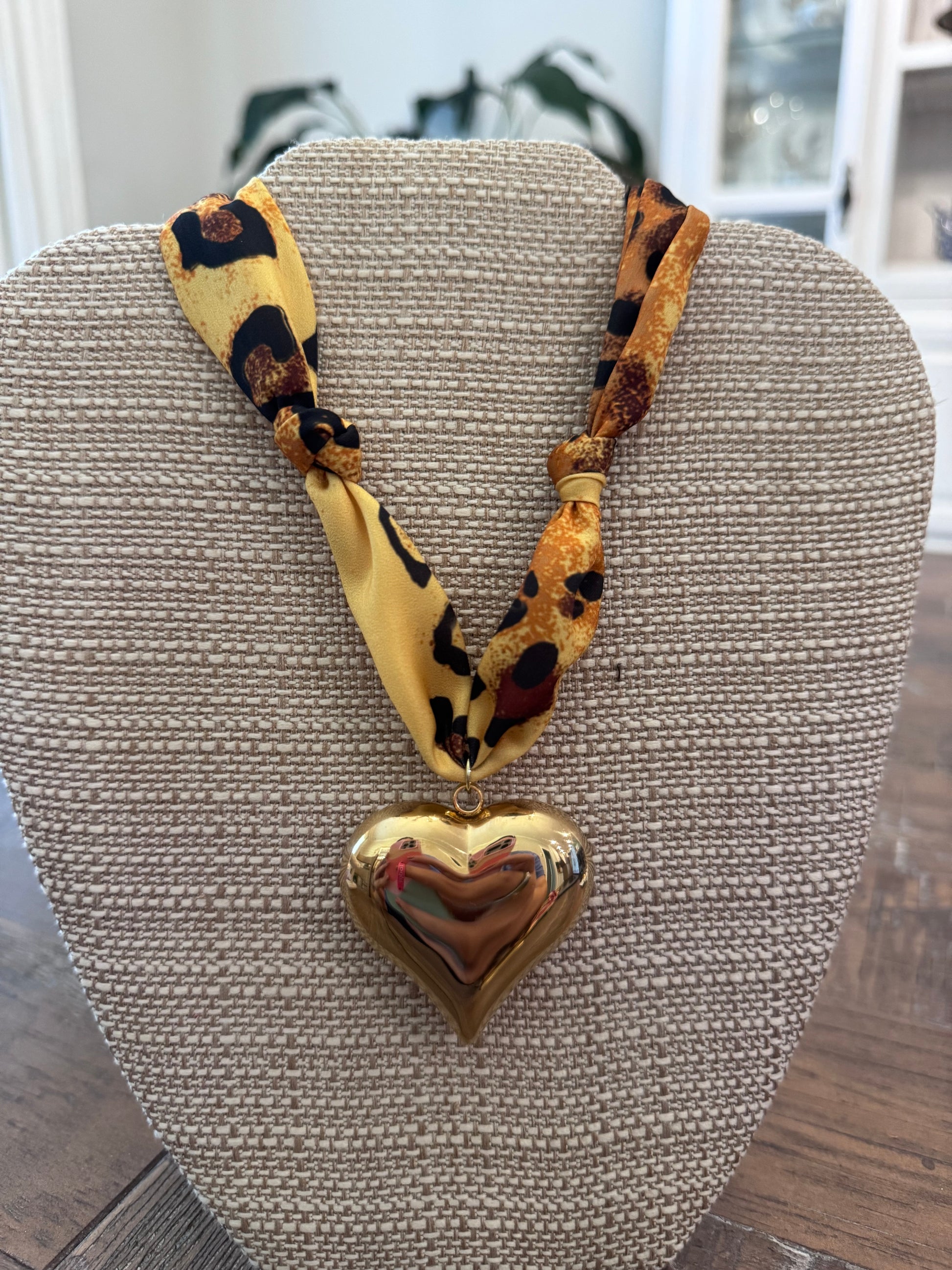 Cheetah Puff Heart Scarf Necklace
